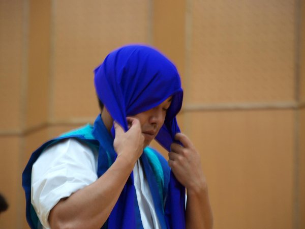 素人が集まるエイサー隊は当然指導者はなく、青年会のビデオを見て、カッコいいパーツをパクリ、それを組み合わせてオリジナルの振付になっています。 振付をそのまままねをしていたらもっと楽で良いものになっていたのかも知れませんが、苦労して作り上げたオリジナルの振り付けだからこそ、大きな舞台でも演ずることができたのかも知れません。