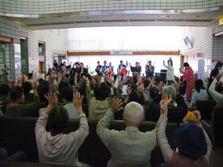 演舞は待合室を利用した仮設ステージです。マイクの位置が悪く、地謡は不覚にも息が続かず・・