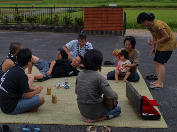 会場の広さを想定して、成願寺盆踊りの空き缶を並べました・・
